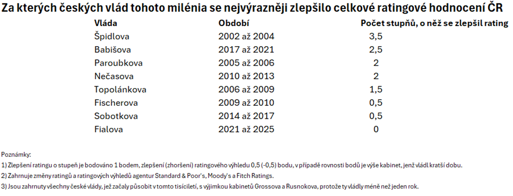 Platí samozřejmě, že čím je ratingové hodnocení lepší, tím relativně obtížnější je docílit jeho dalšího zlepšení. Takže v tomto ohledu čelila Fialova vláda objektivně obtížnějším podmínkám než všechny předchozí kabinety.