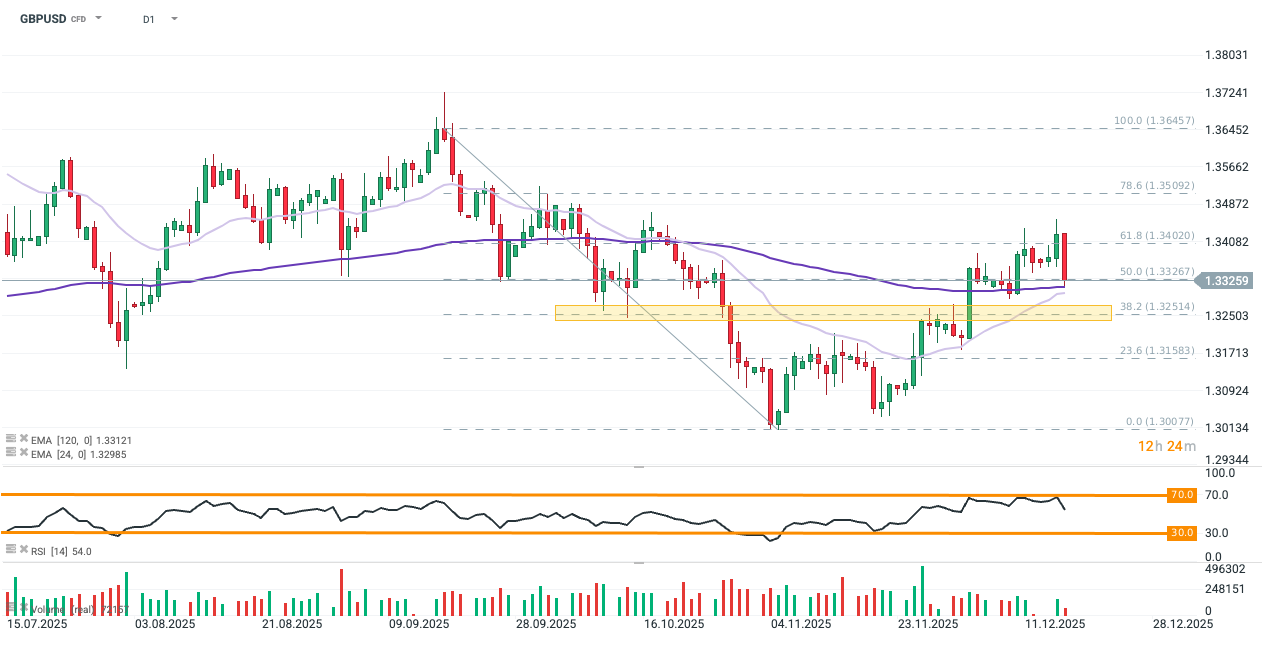 Dnešní údaje o inflaci ze Spojeného království se ukázaly být o něco mírnější, než se očekávalo, a potvrdily širší klesající trend. V důsledku toho trh v letošním roce již počítá se snížením inflace o 71 bb, zatímco před zveřejněním údajů to bylo 67 bb. Britská premiérka zdůraznila, že nižší údaje dávají Bank of England větší prostor a otevírají dveře ke škrtům. K nižším britským údajům přispěly především ceny hotelů a restaurací a také potravin a nápojů. V důsledku toho se dnes populární "kabel" GBP/USD obchoduje o 0,21 % níže. -