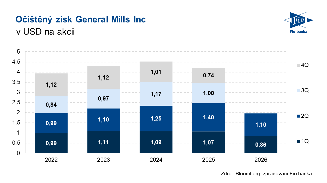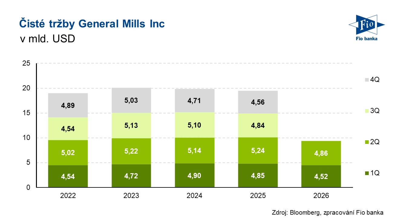 General Mills zveřejnila výsledky za 4Q, organické čisté tržby meziročně klesly o 3 %