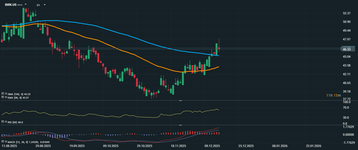 Německý výrobce obuvi Birkenstock čelí rostoucím nákladům v důsledku amerických tarifů, které negativně ovlivňují jeho marže i výhled ziskovosti pro fiskální rok 2026. Společnost očekává, že hrubá marže klesne o 100 bazických bodů na 57–57,5 %, zatímco v roce 2025 činila ještě 59,1 %. Zisk na akcii by měl dosáhnout 1,90 až 2,05 eura, což je pod očekáváním trhu (2,08 EUR podle LSEG).