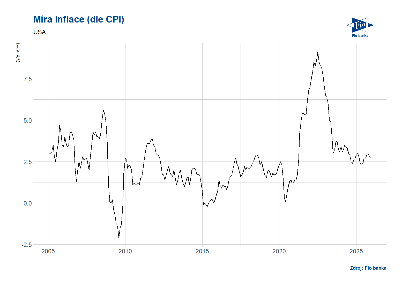 Klíčová slova: Inflace | USA | Bloomberg | Index CPI | Index | Banka | Fio banka | Fio | Míra inflace | Očekávání | Očekávání trhu | Míra | 3М | Jádrový CPI | Fio banka, a.s. | Michal Šnobl |