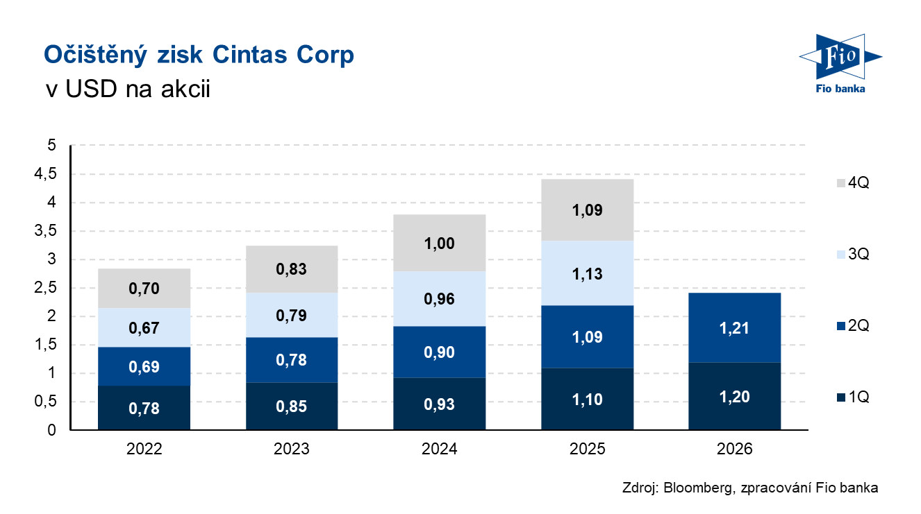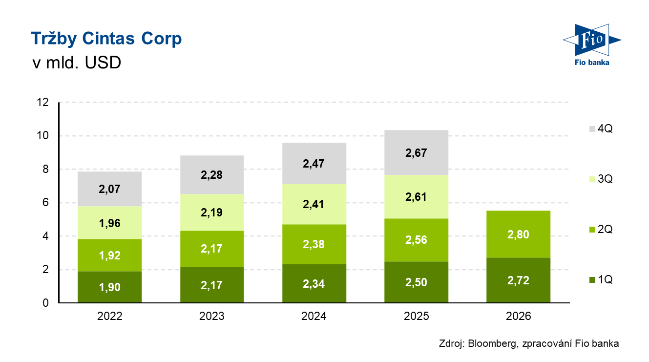 Společnost Cintas, která poskytuje služby a produkty v oblasti pracovních oděvů, hygieny a údržby, zveřejnila výsledky hospodaření za 2. čtvrtletí fiskálního roku 2026, jež skončilo 30. listopadu 2025. Tržby za dané období meziročně vzrostly o 9,3 % na 2,80 mld. USD a byly mírně nad očekáváním analytiků, zatímco očištěný zisk na akcii byl v souladu s odhady. Společnost zároveň zvýšila celoroční výhled.