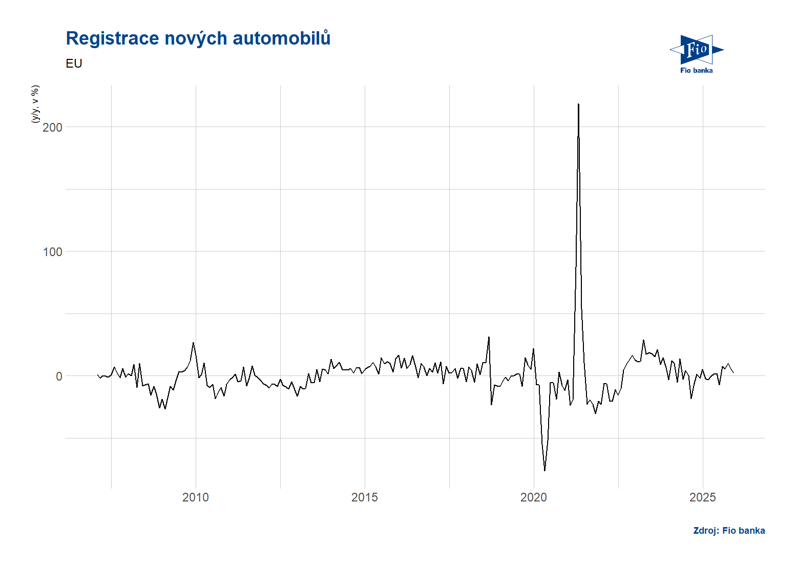 Registrace nových aut (EU27) (leden): aktuální hodnota: -2,6 %. -