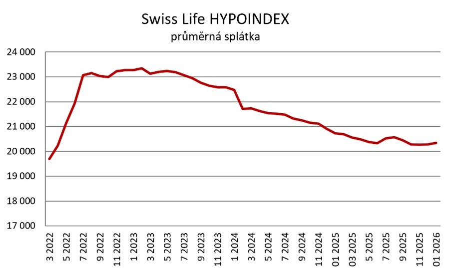 „Tento vývoj se potvrdil i na začátku nového roku. V lednu 2026 dosáhl Swiss Life Hypoindex hodnoty 4,94 %, což představovalo meziměsíční nárůst o 3 bazické body oproti prosinci. Jde o technickou korekci po předchozí stagnaci. Mírný pohyb vzhůru odráží opatrnost bank v prostředí přetrvávajících inflačních rizik a nejistoty ohledně dalšího makroekonomického vývoje,“ uvedl Jiří Sýkora, hypoteční analytik společnosti Swiss Life Select.