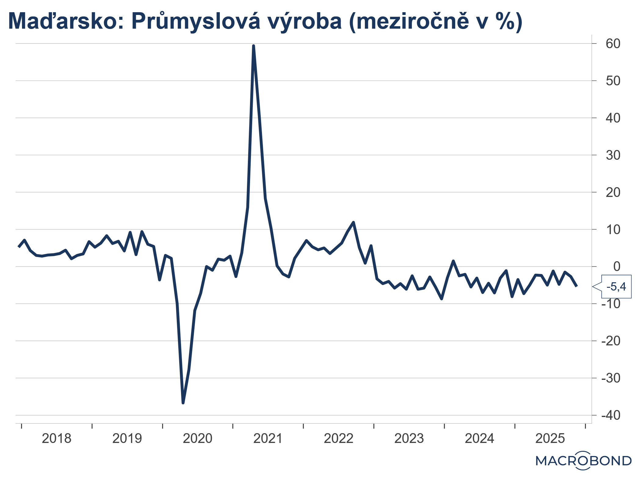 Průmyslová výroba v srpnu klesla o 4,6 % meziročně oproti poklesu o 1 % v červenci. Trhy očekávaly zvolnění výroby o 2,7 % meziročně. -