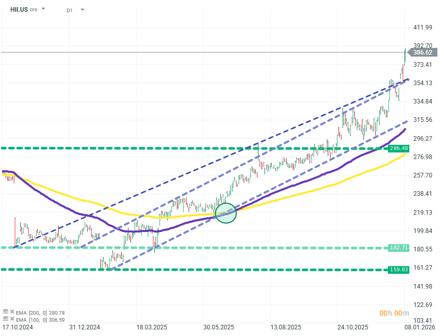 Na rozdíl od společností jako Boeing nebo General Dynamics však nejde jen o záchrannou síť, ale o růstový katalyzátor – HII je v pozici, kdy tyto klíčové závislosti zvyšují její růstový potenciál.