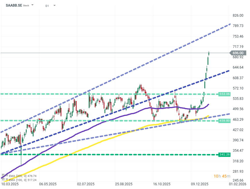 Švédská společnost Saab se aktuálně nachází ve fázi velmi silného růstového trendu.