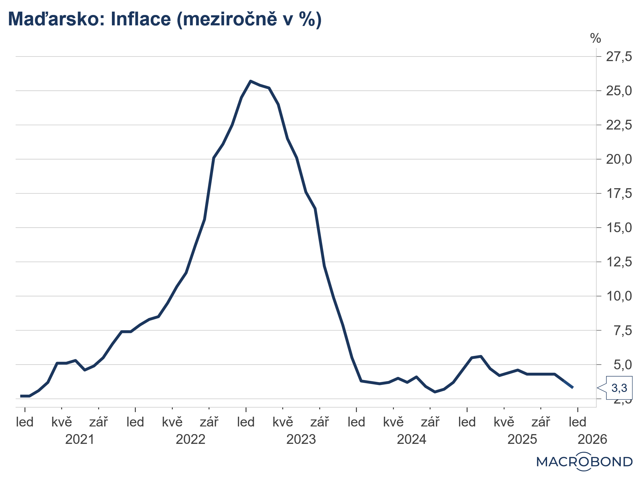 Prosincová inflace v Maďarsku skončila mírně nad odhady trhu, což značí jistou úlevu pro forint, který před jejím zveřejněním viditelně oslaboval. Meziměsíčně ceny vzrostly o 0,1 %, což v meziročním srovnání značí 3,3 %, respektive 3,8 % pro jádrovou inflaci. Pro MNB to zřejmě bude signál, aby odložila uvažované snížení sazeb minimálně na březen. Jinak řečeno pro centrální banku bude dobré si počkat, kam se posune inflace v lednu, kdy se projeví tradiční úpravy ceníků na začátku roku. -