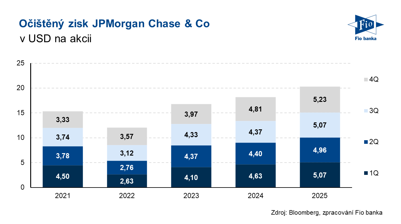 Klíčová slova: Inflace | USA | Apple | Analytik | Americká ekonomika | Rizika | Akcie | Aktiva | Bloomberg | Dividendový výnos | Ekonomika | P/E | Riziko | Ukazatel | Výnos | Zisk na akcii | Banky | USD | Obchodování | JPMorgan | Zisk | Výsledky | Investiční bankovnictví | EPS | Banka | Fio banka | Cena | Fio | Investiční | Trh | Cílová cena | Bankovnictví | Firmy | JPMorgan Chase | Citi | Pokles výnosů | Kapitalizace | Výhled | Poplatky | Konsensus | Výnosy | Jamie Dimon | Kvartální výsledky | Obchodování dluhopisů | Čistý zisk | Trh práce | Generální ředitel | Ziskovost | Kapitálová přiměřenost | Trhy | Pokles | Situace | Meziroční růst | Americké ekonomiky | Vývoj | Spotřebitelé | JPMorgan Chase & Co | Růst | Americká banka | Banka JPMorgan | Ekonomiky | Práce | JPM | Výhled na rok | Vývoj akcie | Čisté úrokové výnosy | Úrokové výnosy | Výnosy banky | Společnosti | Podmínky na trhu | Společnost | Výsledky společnosti | 3М | Jakub Němec | Vklady | Ekonomické podmínky | Potenciální rizika | ProCent | Očištěný zisk na akcii | Fio banka, a.s. | Fio banka, a.s. | Náklady | Rok 2026 |