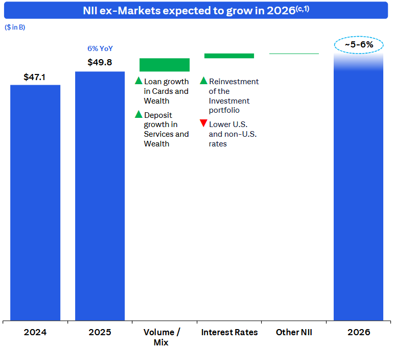 Čisté úrokové výnosy zaznamenaly meziroční růst o 14 % na 15,67 mld. USD při konsensu 14,89 mld. USD. Neúrokové výnosy meziročně poklesly o 27 % na 4,21 mld. USD.