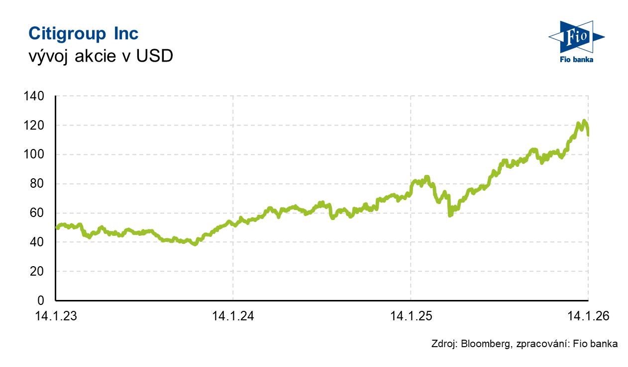 Americká banka Citigroup reportovala výsledky za 4Q 2025. Výsledky negativně ovlivnil prodej ruské divize AO Citibank. Citi očekává, že čistý úrokový výnos bez zahrnutí divize finančních trhů v roce 2026 meziročně vzroste o 5–6 %. Banka nadále cílí na rentabilitu vlastního hmotného kmenového kapitálu (ROTCE) v rozmezí 10 až 11 % v roce 2026.
