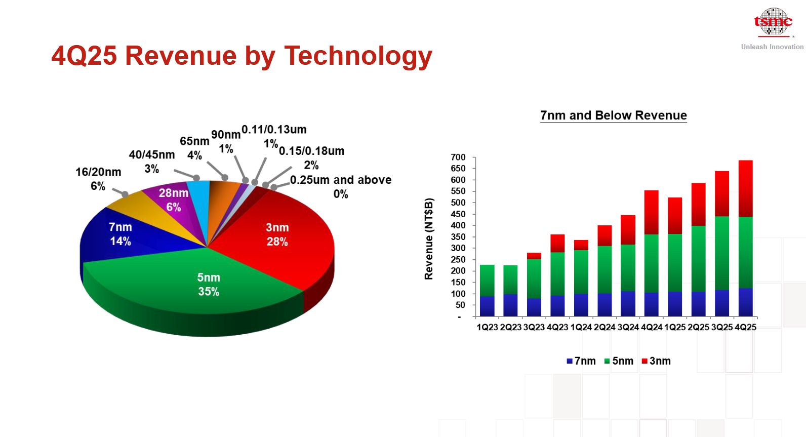 Čistý zisk vzrostl meziročně o 35 % na 505,7 mld. TWD (16,3 mld. USD), oproti konsensu trhu ve výši 467 mld. TWD. Marže čistého zisku se zvýšila na 48,3 %, zatímco ve stejném období před rokem činila 43,1 %.