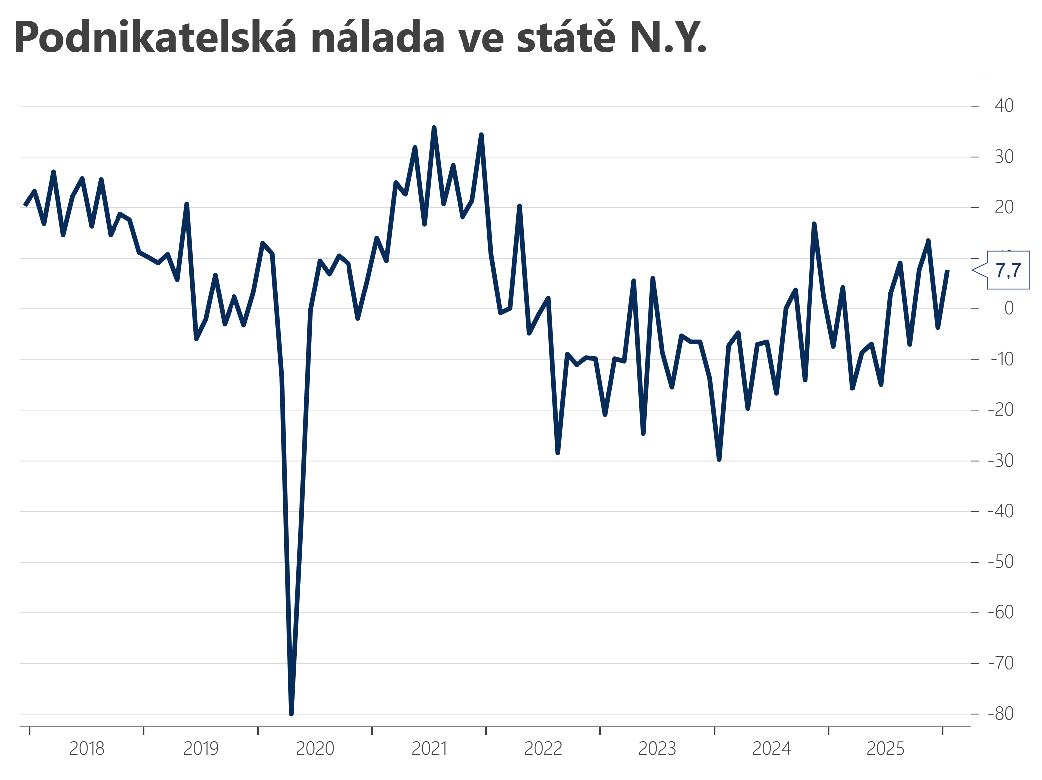Podnikatelská nálada ve státě New York v lednu stoupla na 7,7 b. oproti revidovaným -3,7 b. v prosinci. Trhy očekávaly růst nálady na 1 b.