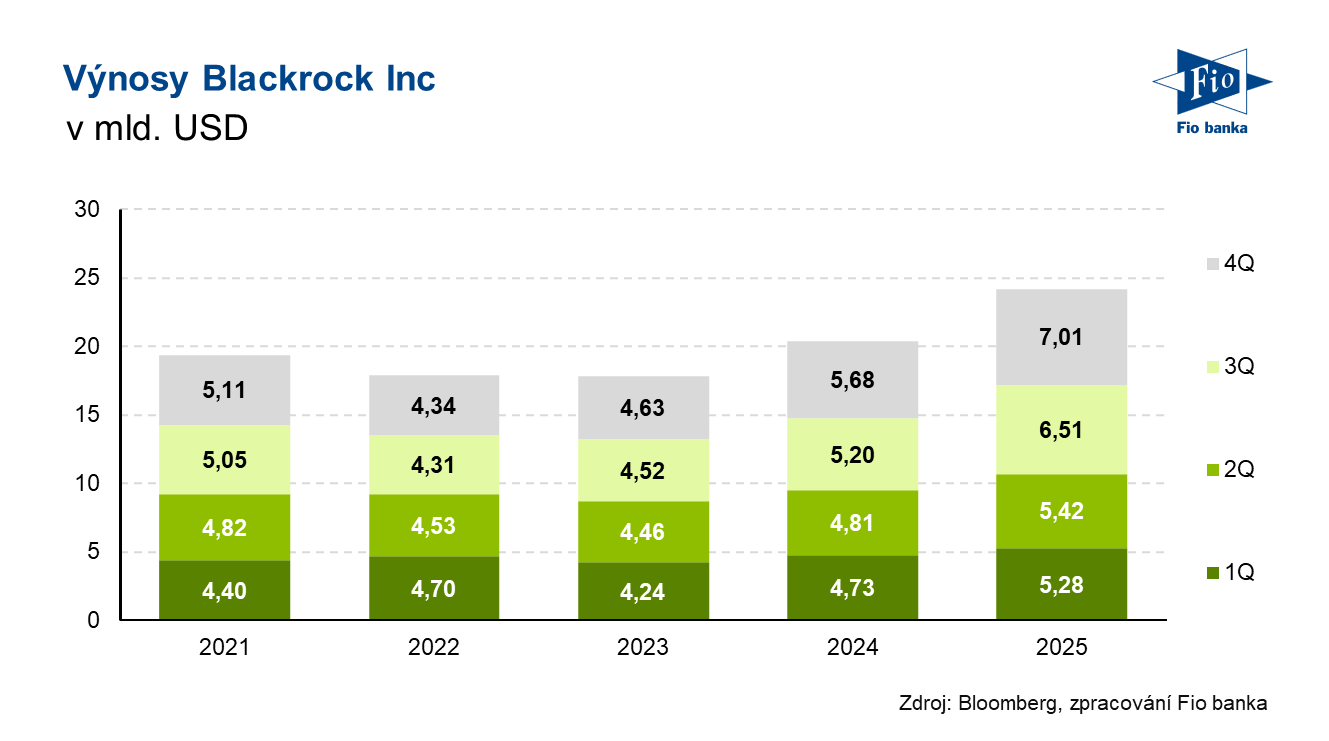 Klíčová slova: ETF | Dividendy | Akcie | Aktiva | Bloomberg | CEO | Dividenda | Dividendový výnos | Marže | P/E | Ukazatel | Výnos | Zisk na akcii | USD | Obchodování | Zisk | Výsledky | EPS | Banka | Fio banka | Cena | Fio | Cílová cena | Provozní marže | ROCE | BlackRock | Kapitalizace | Konsensus | Výnosy | Odhad analytiků | iShares | Čistý zisk | Předseda představenstva | Firma | Generální ředitel | Předseda | Hospodaření | Výsledky hospodaření | Trhy | Vývoj | Růst | Správce aktiv | Společnosti | Společnost | Výsledky společnosti | 3М | Akcie BlackRock | Aktiva pod správou | Správce aktiv BlackRock | Očištěný zisk na akcii | Fio banka, a.s. | Rok 2025 | Michal Šnobl | Fink |