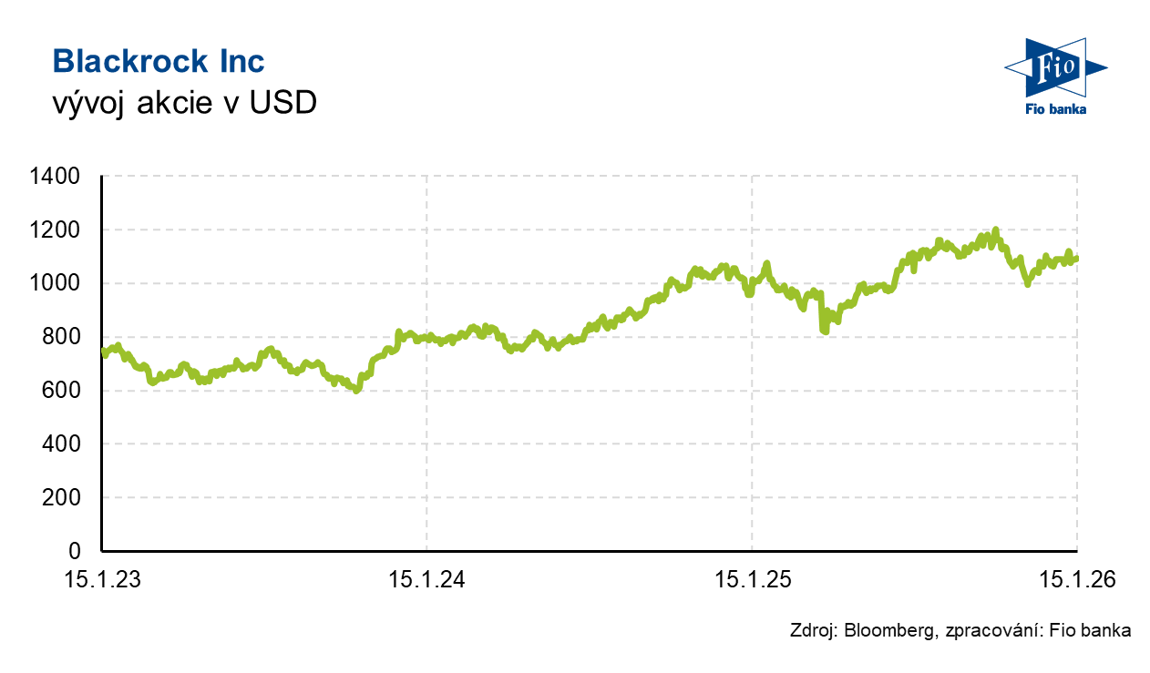 Největší světový správce aktiv BlackRock zveřejnil výsledky hospodaření za 4. čtvrtletí roku 2025. Aktiva pod správou meziročně vzrostla o 22 % na rekordních 14,04 bil. USD, nad konsensem analytiků ve výši 13,94 bil. USD. Čistý přítok aktiv dosáhl 341,7 mld. USD, rovněž nad očekáváním. Společnost zároveň oznámila zvýšení čtvrtletní dividendy o 10 % na 5,73 USD na akcii.