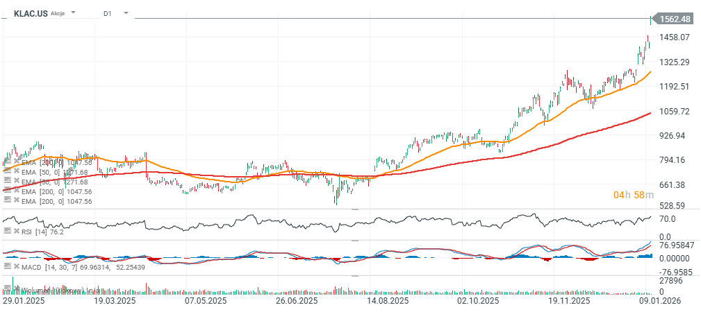Cílovou cenu pro akcie KLA zvýšili na 1 697 USD z předchozích 1 214 USD – jedno z nejvyšších hodnocení mezi hlavními institucemi.