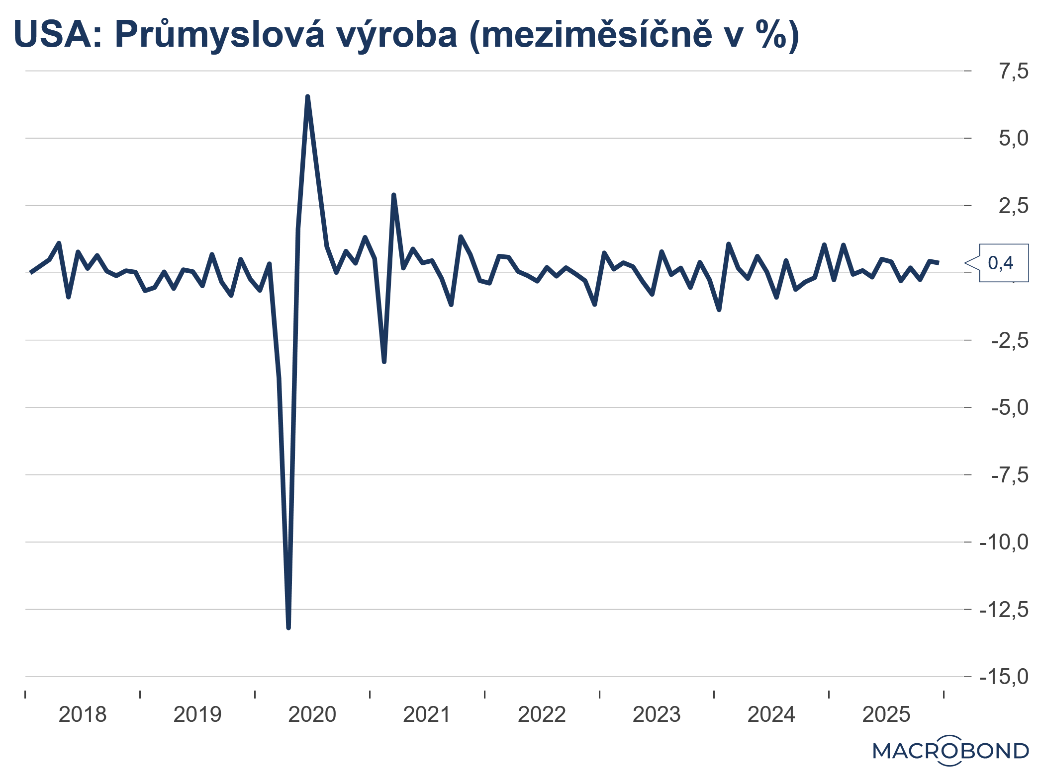 Průmyslová výroba v únoru klesla na nulu oproti revidovaným 0,3 % meziměsíčně v lednu. Trhy očekávaly růst 0,2 % meziměsíčně. -