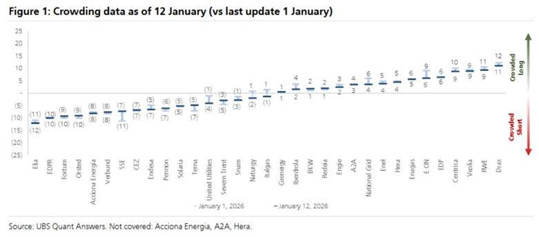 Mezi evropskými energetikami je jen málo těch, na jejichž propad by investoři v čistém vyjádření sázeli ještě více než na pokles akcií ČEZ (viz graf UBS níže). UBS sama, jak víme, stanovuje cílovou cenu ČEZ na úrovni 600 Kč. Pokud by se takto mohutně akcie české energetické jedničky propadly, z nynější úrovně necelých 1200 Kč, zestátnění výroby elektřiny v ČEZ by bylo o vysoké desítky miliard levnější.
