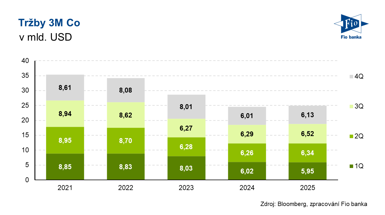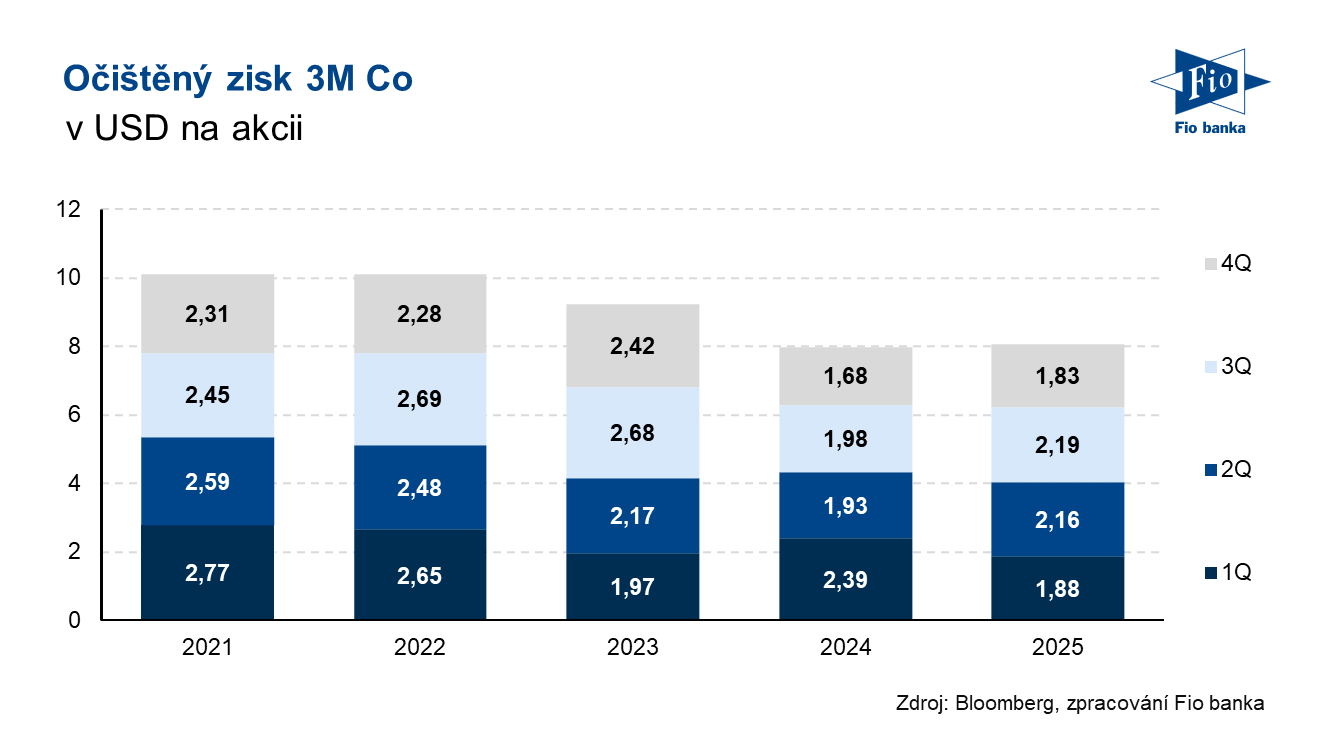 Klíčová slova: Disciplína | Daně | Akcie | Bloomberg | CEO | Dividendový výnos | Investor | Marže | P/E | Pozice | Ukazatel | Výnos | Zisk na akcii | USD | Obchodování | Zisk | Výsledky | EPS | Banka | Fio banka | Cena | Fio | Cílová cena | Provozní marže | ROCE | Tržby | Kapitalizace | Výhled | Konsensus | Výplaty dividend | Odhady analytiků | Konglomerát | Čistý zisk | Předseda představenstva | Firma | Generální ředitel | Předseda | Zlepšení | Akcie 3M | Vývoj | Další růst | Růst | 3M | Růst tržeb | MMM | Společnosti | Společnost | Výsledky společnosti | Celoroční výhled | 3М | Rozšíření | Makroekonomické prostředí | Vice | Průmyslový konglomerát | Volný peněžní tok | Peněžní tok | Společnost 3M | Očištěný zisk na akcii | Fio banka, a.s. | Rok 2025 | Ředitel společnosti | Michal Šnobl | Rok 2026 |
