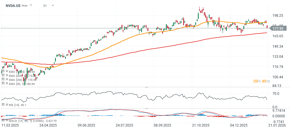 Je však důležité zdůraznit, že potvrzení poklesu zatím není jisté. Návrat nad 186 USD (EMA50) by mohl signalizovat obnovu růstového trendu. Nvidia zveřejní výsledky hospodaření 26. února po uzavření Wall Street.