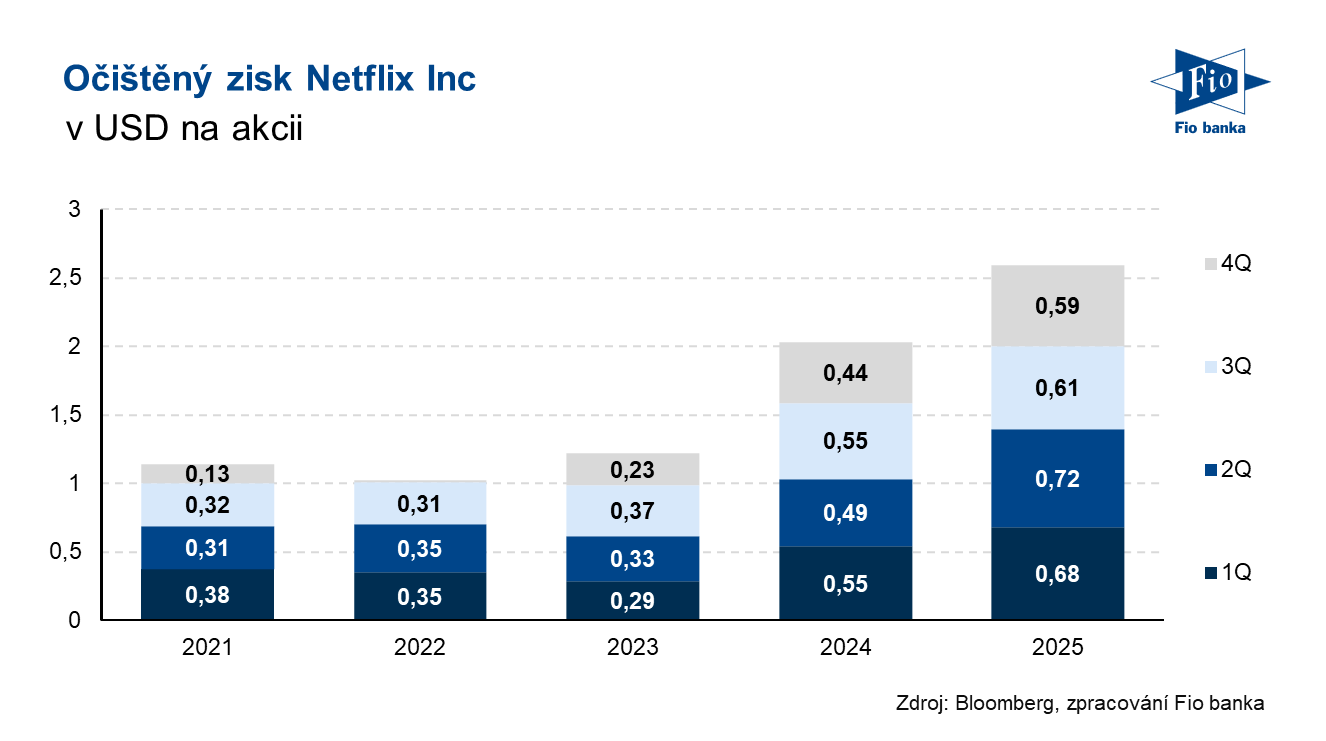 Klíčová slova: USA | Kanada | Analytik | Akcie | Akvizice | Bloomberg | Cash flow | Dividendový výnos | Marže | P/E | Ukazatel | Výnos | Zisk na akcii | Analytici | USD | Obchodování | Morgan Stanley | Evropa | Zisk | Výsledky | Financování | EPS | Akcie Netflix | Banka | Fio banka | Cena | Fio | Fiskální rok | Trh | Cílová cena | Provozní marže | Dostatek hotovosti | Kapitalizace | Výhled | Konsensus | Odhady trhu | Výnosy | Očekávání | Netflix (NFLX) | Akcie společnosti | Očekávání trhu | Čistý zisk | Hospodaření | Netflix | NFLX | Výsledky hospodaření | Trhy | Provozní zisk | Meziroční růst | Free cash flow | Vývoj | Růst | Afrika | Latinská Amerika | Pacifik | Výhled na rok | Vývoj akcie | Discovery | Konsensus trhu | Streamovací společnost | Společnosti Netflix | Společnosti | Warner Bros | Odkupy akcií | Společnost | Výsledky společnosti | Celoroční výhled | 3М | Cowen | Warner Bros Discovery | Jakub Němec | Zpětné odkupy | EMEA | Vývoj akcie Netflix | APAC | Rezervy | Fio banka, a.s. | Komentář analytiků | TD Cowen | Hotovostní rezervy | Amerika | Rok 2026 |