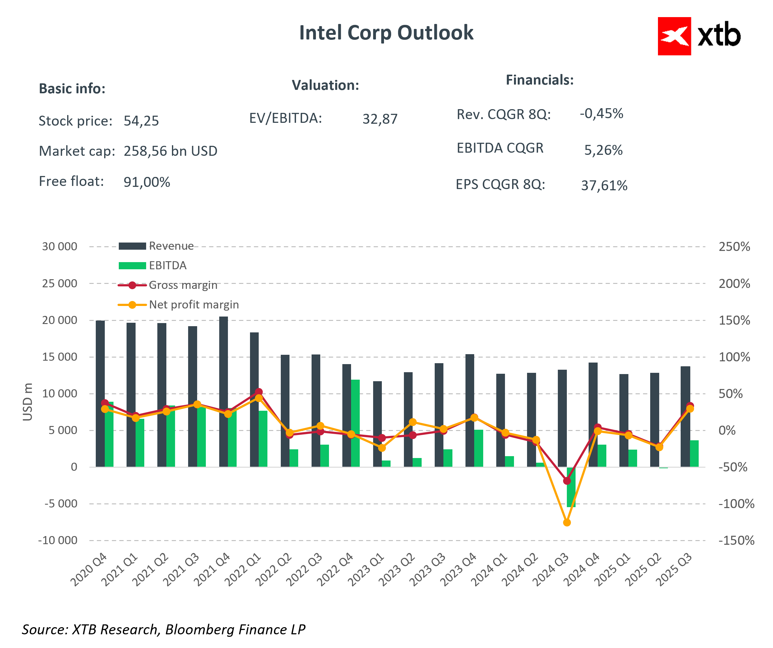 Výrobce čipů Intel včera po uzavření trhu zveřejnil výsledky za 2Q 2025. Výsledky za dané období překonaly očekávání na úrovni tržeb a společnost poskytla výhled tržeb na tento kvartál, jenž je vnímán pozitivně. Analytici však upozornili na slabší marže. Intel zároveň oznámil další škrty, včetně omezení projektů v Německu a Polsku, zpomalení výstavby v Ohiu a plánovaného snížení počtu zaměstnanců o 15 %. -