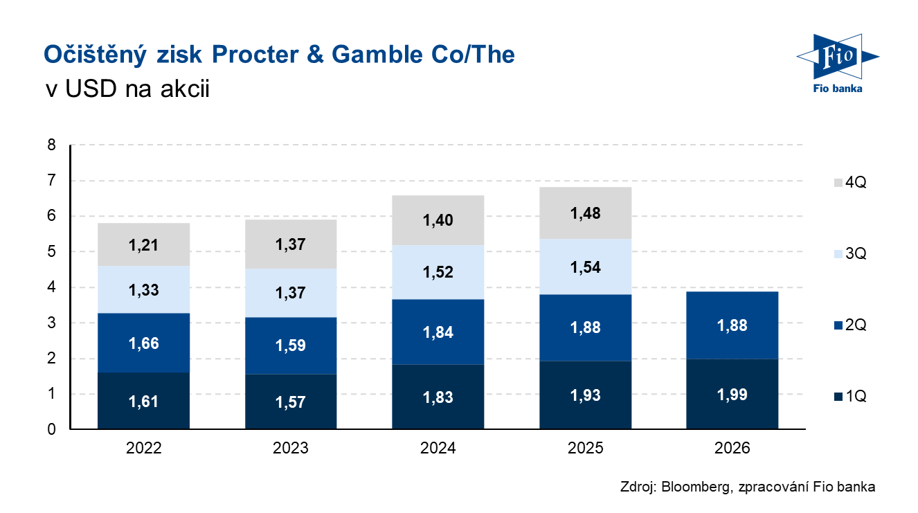 Klíčová slova: Akcie | Bloomberg | CEO | Dividenda | Dividendový výnos | Marže | P/E | Ukazatel | Výnos | Zisk na akcii | USD | Obchodování | Zisk | Výsledky | EPS | Banka | Fio banka | Cena | Fio | Fiskální rok | Odkup akcií | Cílová cena | Hrubá marže | Tržby | Podnikání | Hospodářské výsledky | Procter & Gamble (PG) | Kapitalizace | Výhled | Konsensus | Očekávání analytiků | Očekávání | Odhad analytiků | Zpětný odkup akcií | Čistý zisk | Objem | Firma | Generální ředitel | Prezident | Vývoj | Růst | Procter & Gamble | Růst tržeb | P&G | Akcie Procter & Gamble | Akcie Procter & Gamble (PG) | Plány | Americký výrobce | PG | Společnosti | Gamble | Společnost | Výsledky společnosti | Celoroční výhled | 3М | Očištěný zisk na akcii | Fio banka, a.s. | Ředitel společnosti | Michal Šnobl | Rok 2026 |