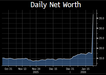Zmíněný Strnad, většinový majitel a šéf Czechoslovak Group, se v pátek zařadil na 64. místo nejbohatších lidí světa podle průběžně aktualizovaného žebříčku agentury Bloomberg. Jeho jmění činí 759,2 miliard korun. Tvoří jej zejména právě jeho podíl v Czechoslovak Group, jenž tedy po vstupu na burzu „prošel průzkumem trhem“, který jej nyní oceňuje tak, že Strnadův majetek se oproti čtvrtku oficiálně – s burzovním štemplem – rozrostl o necelých 355 miliard korun (nárůst Strandova dolarová jmění zachycuje graf Bloombergu níže).