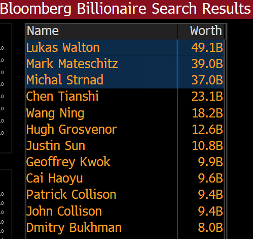Takové masivní Strandovo zbohatnutí „přes noc“ jej v samotné Evropě katapultuje na 12. příčkou v žebříčku nejzámožnějších (viz tabulka Bloombergu níže).