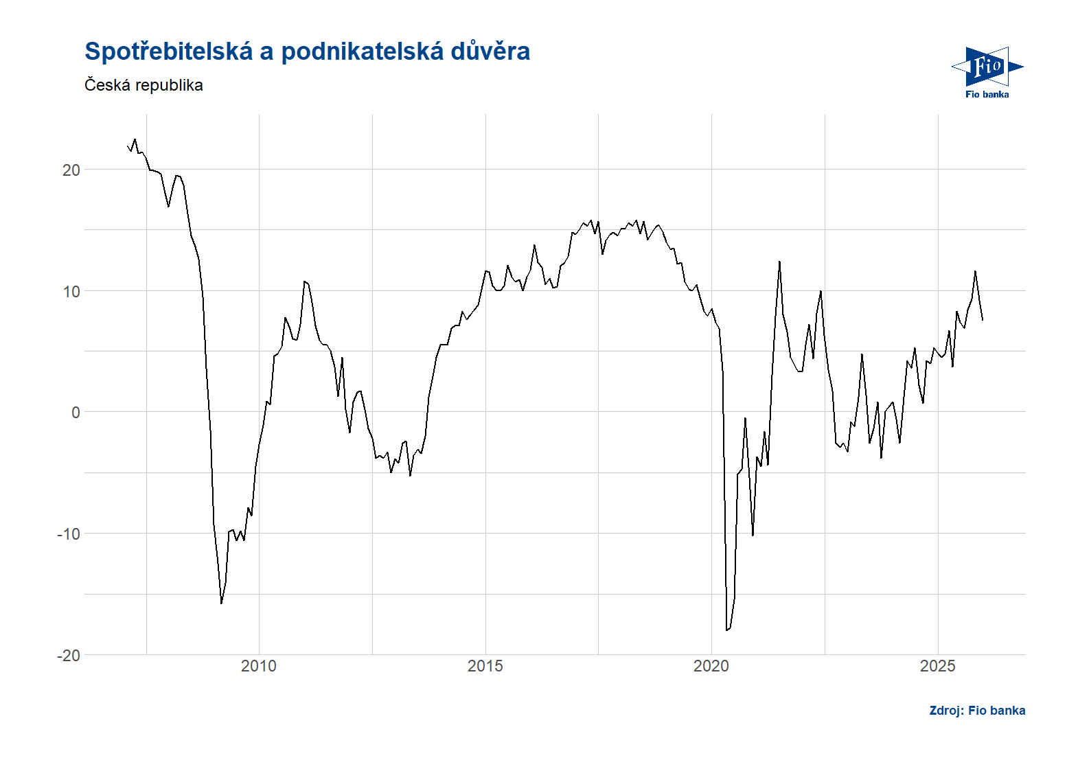 Klíčová slova: Poptávka | Bloomberg | Index | Banka | Fio banka | Fio | Podnikatelská důvěra | Očekávání | Index spotřebitelské důvěry | Očekávání trhu | ČSÚ | Situace | Domácnosti | Důvěra spotřebitelů | ČR | Důvěra | Fio banka, a.s. | Michal Šnobl |