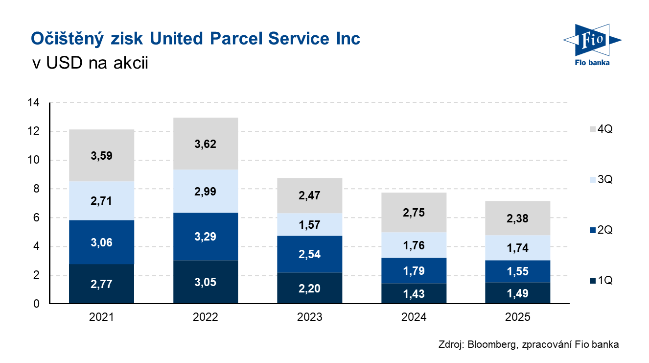 Klíčová slova: USA | Akcie | Bloomberg | CEO | Dividendový výnos | P/E | Ukazatel | Výnos | Zisk na akcii | USD | Obchodování | Zisk | Výsledky | EPS | Banka | Fio banka | Cena | Fio | Cílová cena | ROCE | Kapitalizace | Výhled | Konsensus | Výnosy | Konsenzus | Očekávání | Odhady analytiků | Odhad analytiků | Kapitálové výdaje | Čistý zisk | Firma | Ředitelka | Provozní zisk | Zlepšení | Výdaje | Vývoj | Růst | United Parcel Service | UPS | United Parcel Service (UPS) | Dodavatelský řetězec | Společnosti | Společnost | Výsledky společnosti | Celoroční výhled | 3М | Řetězec | Zvyšování marží | Společnost UPS | Očištěný zisk na akcii | Služby | Fio banka, a.s. | Akcie UPS | Spolupráce | Rok 2025 | Doručování | Michal Šnobl | Rok 2026 |