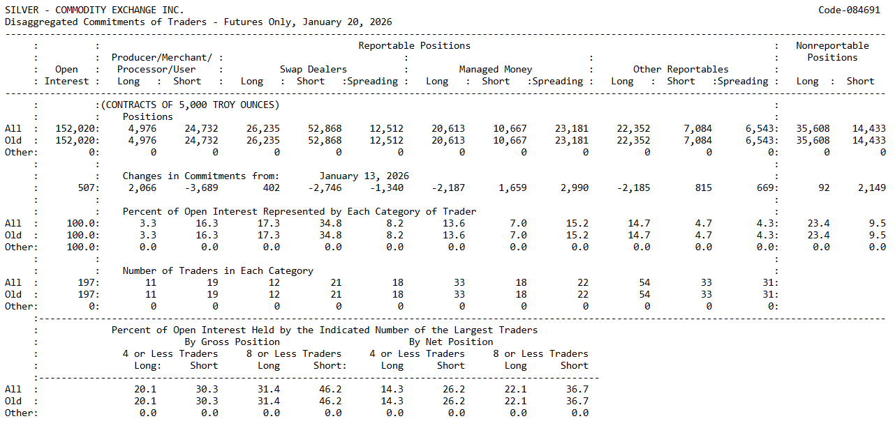 Při pohledu na pozice na COMEXu je zřejmé, že komerční subjekty (producenti, zpracovatelé a koncoví uživatelé) jsou silně zajištěni na short straně: přibližně 24,7 tis. short kontraktů oproti asi 5 tis. longům. V praxi se jedná o zajištění proti poklesu cen nebo fixaci budoucího prodeje. Správci peněz (fondy, CTA, institucionální spekulanti) jsou naopak: drží přibližně 20,6 tis. long a 10,7 tis. short kontraktů, což znamená, že jsou stále netto long a sázejí na růst cen. S rostoucími cenami komerční hráči mírně zmírnili tlak na pokles a přidali long pozice. Velcí spekulanti však postupovali opačně: snížili long pozice a navýšili některé shorty, což může značit první známky opatrnosti nebo výběr zisků. Velcí spekulanti tak zůstávají na býčí straně, ale za uplynulý týden se objevily náznaky opatrnosti. Komerční subjekty zůstávají „druhou stranou obchodu“, ale jejich pozice se mírně uvolnily – což se někdy děje, když jsou ceny vysoko a část rizika byla již zajištěna. Zároveň jsou malí obchodníci (Nonreportables) výrazně býčí: asi 35,6 tis. long a 14,4 tis. short kontraktů, což znamená, že zůstávají silně netto long a podporují růstový trend. To je typické v euforických fázích trhu.