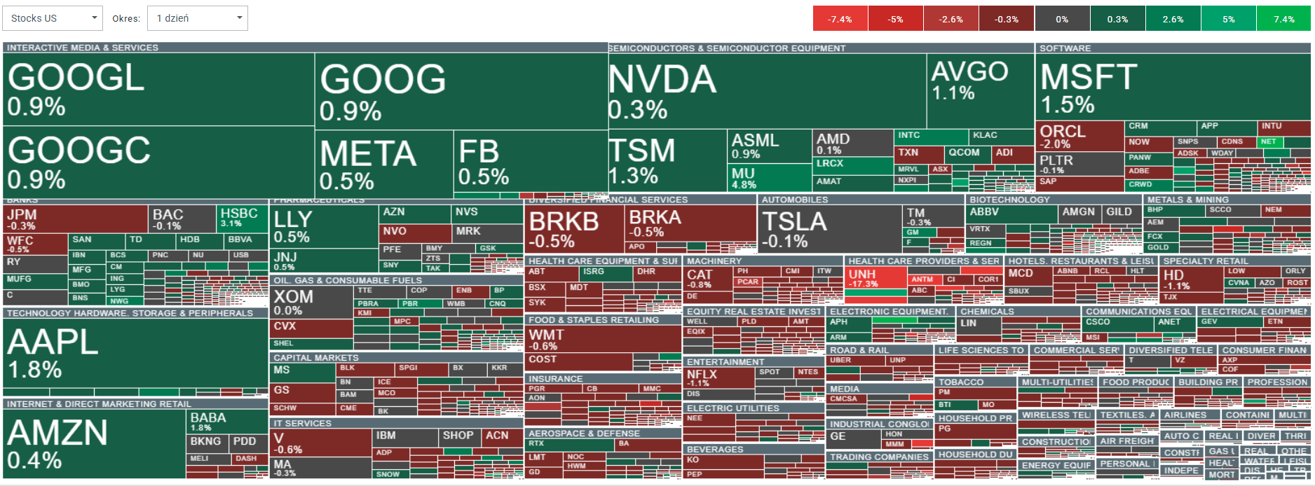 Akcie UnitedHealth klesají o více než 17 %, ale širší náladu na trhu podporuje růst velkých technologických titulů. Daří se Apple, Amazonu, Alphabetu, Meta Platforms a Nvidii, stejně jako dodavatelům v polovodičovém řetězci jako Micron, Lam Research a také Cloudflare z oblasti kyberbezpečnosti.