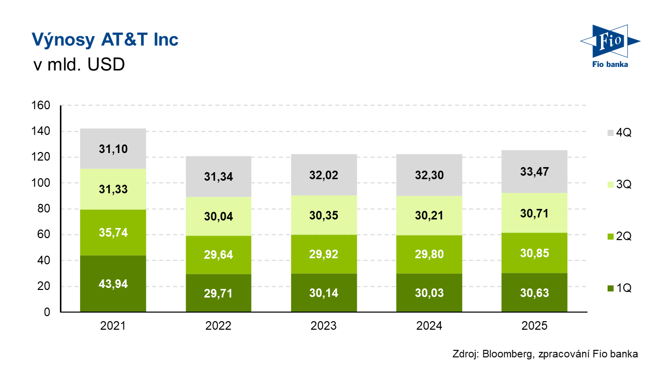 Klíčová slova: USA | Akcie | Bloomberg | CEO | Dividendový výnos | Investice | P/E | Ukazatel | Výnos | Zisk na akcii | Analytici | USD | Obchodování | Zisk | Výsledky | EPS | Banka | Fio banka | Cena | Fio | Prognóza | Trh | Tržní podíl | Zkušenost | Cílová cena | Čistý dluh | EBITDA | ROCE | Tržby | Scotiabank | Citi | Tempo růstu | Kapitalizace | Výhled | Konsensus | Výnosy | Očekávání | Podniky | Akcie společnosti | Odhad analytiků | Kapitálové výdaje | Čistý zisk | Generální ředitel | Míra | AT&T | Hospodaření | Výsledky hospodaření | Ukazatele | Zisk EBITDA | Provozní zisk | Meziroční růst | Výdaje | FCF | Vývoj | Domácnosti | Růst | Vyšší výnosy | Růst výnosů | T-Mobile | Dlouhodobý výhled | T-Mobile US | Finanční výsledky | Akcie AT&T | Verizon | Konsensus trhu | Divize | Společnosti | Společnost AT&T | Společnost | Výsledky společnosti | 3М | Vital Knowledge | Akcie společnosti AT&T | Telekomunikační společnost | Vice | ProCent | Očištěný zisk na akcii | Služby | Fio banka, a.s. | Ukazatele výkonnosti | Michal Bárta | Volné hotovostní toky | Hotovostní toky |