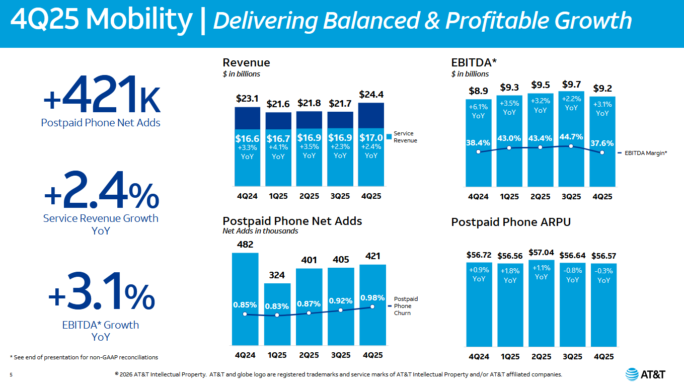 Výsledky společnosti AT&T (T) za 4Q 2025 | |||