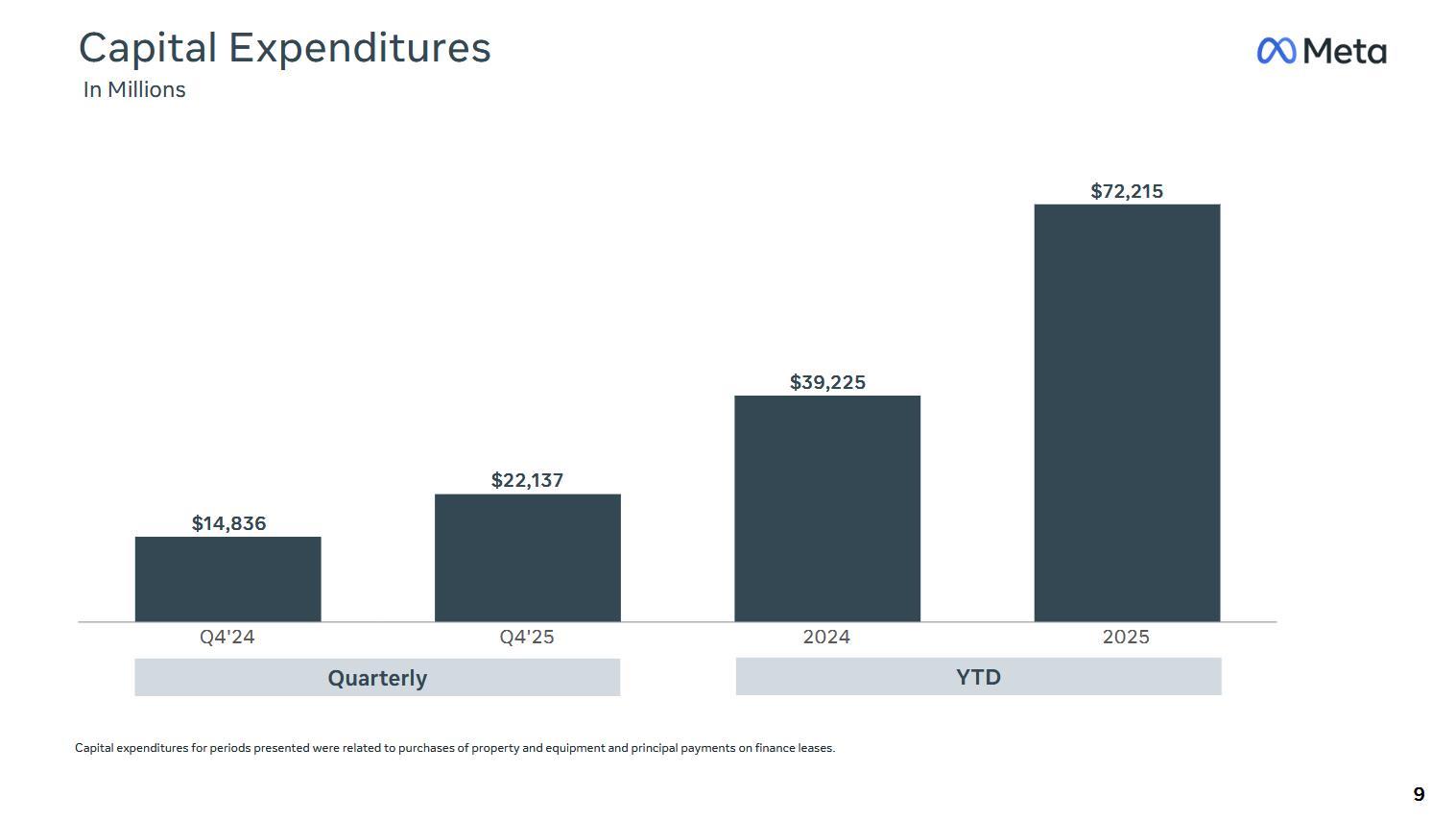 Kapitálové výdaje ve čtvrtém čtvrtletí dosáhly 22,14 mld. USD, za celý rok 2025 pak činily 72,22 mld. USD.