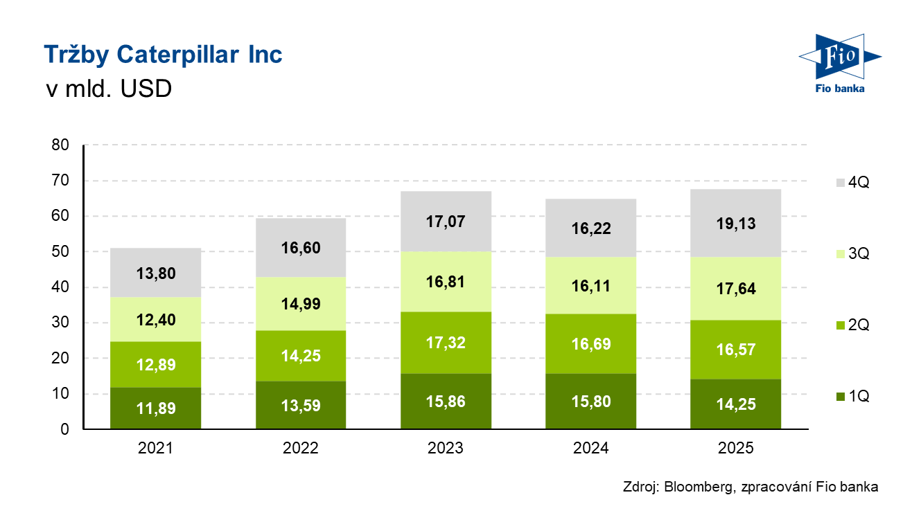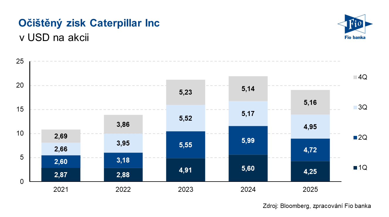 Klíčová slova: Akcie | Bloomberg | CEO | Dividendový výnos | P/E | Ukazatel | Výnos | Wall Street | Zisk na akcii | USD | Obchodování | Zisk | Výsledky | EPS | Banka | Fio banka | Cena | Fio | Trh | Cílová cena | ROCE | Tržby | Caterpillar | Energie | Kapitalizace | Výhled | Konsensus | Predikce | Očekávání | Akcie společnosti | Kapitálové výdaje | Očekávání trhu | Čistý zisk | Provozní zisk | Výdaje | Vývoj | Tržby společnosti | Hotovost | Růst | Růst tržeb | Vývoj akcie | Vyšší úroveň | Americký výrobce | CAT | Divize | Společnosti | Společnost | Výsledky společnosti | 3М | Milník | Významný milník | Očištěný zisk na akcii | Peněžní toky | Výzkum a vývoj | Fio banka, a.s. | Náklady | Rok 2026 | Marek Krejčiřík |