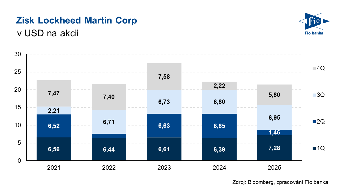 Klíčová slova: Dividendy | Akcie | Bloomberg | CEO | Dividendový výnos | Marže | P/E | Portfolio | Ukazatel | Výnos | Zisk na akcii | Banky | USD | Zisk | Výsledky | EPS | Banka | Fio banka | Cena | Fio | Portfolia | Trh | Cílová cena | Hrubá marže | Tržby | Jefferies | Kapitalizace | Výhled | Konsensus | Odhady trhu | Konsenzus | Očekávání | Lockheed Martin | Kapitálové výdaje | Čistý zisk | Předseda představenstva | Firma | Generální ředitel | Předseda | Hospodaření | Výsledky hospodaření | Prezident | Provozní zisk | Výdaje | Vývoj | Letectví | Výhled na rok | LMT | Americký výrobce | Společnosti | Odkupy akcií | Společnost | Výsledky společnosti | Celoroční výhled | 3М | Cowen | F-35 | Zpětné odkupy | Portfolio společnosti | Volný peněžní tok | Peněžní tok | Portfólia | Lockheed | Fio banka, a.s. | Systémy řízení | TD Cowen | Rok 2025 | Navýšení | Ředitel společnosti | Michal Šnobl | Truist Securities | Rok 2026 |
