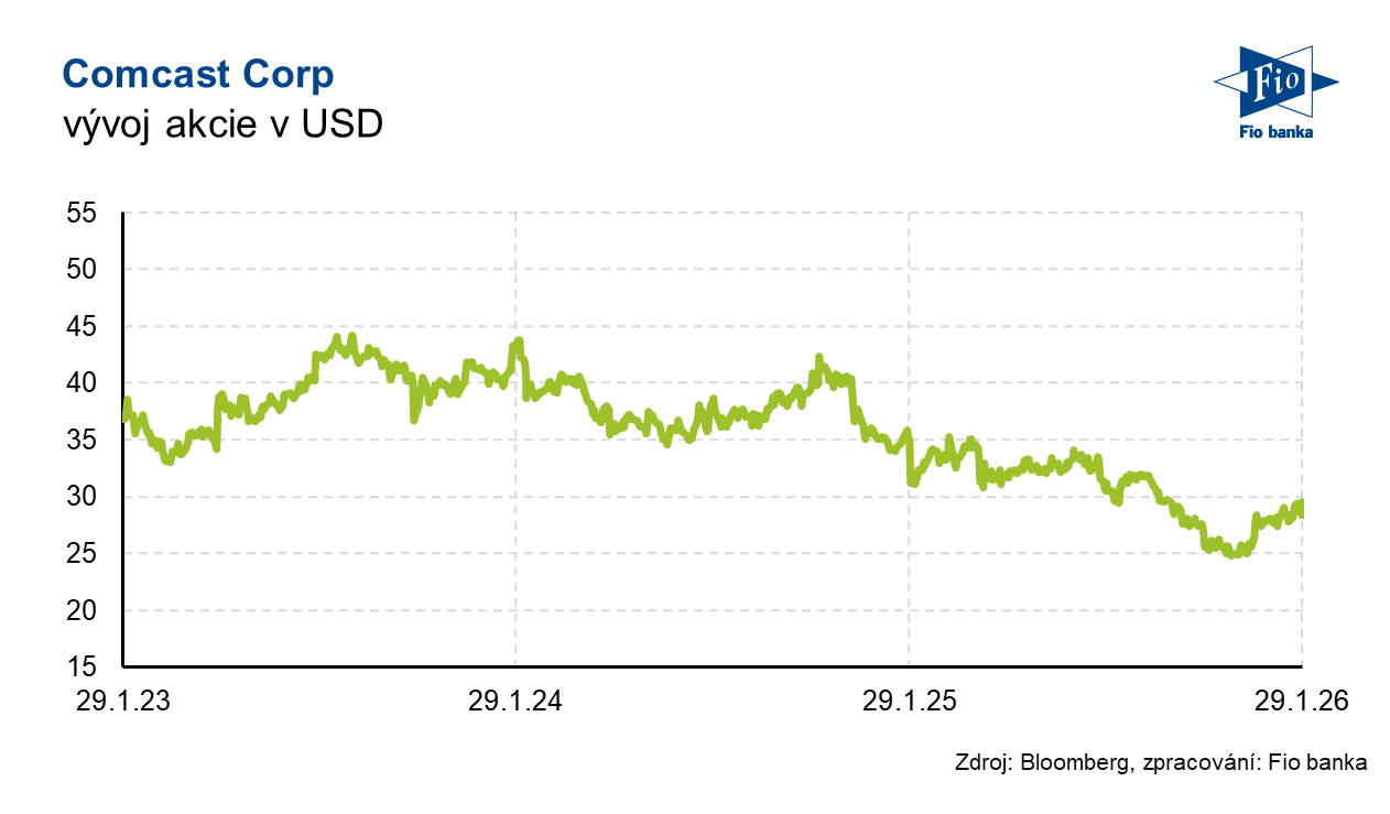 Americký telekomunikační a mediální konglomerát Comcast zveřejnil své výsledky hospodaření za čtvrtý kvartál roku 2025. Výnosy vzrostly meziročně o 1,2 %. Očištěný zisk na akcii meziročně poklesl, ale překonal očekávání trhu. Společnost vykázala výrazný meziroční nárůst volných peněžních toků, a to o 34 %. Comcast také pokračoval v návratu kapitálu akcionářům, vrátil jim 2,7 mld. USD prostřednictvím dividend a zpětného odkupu akcií.