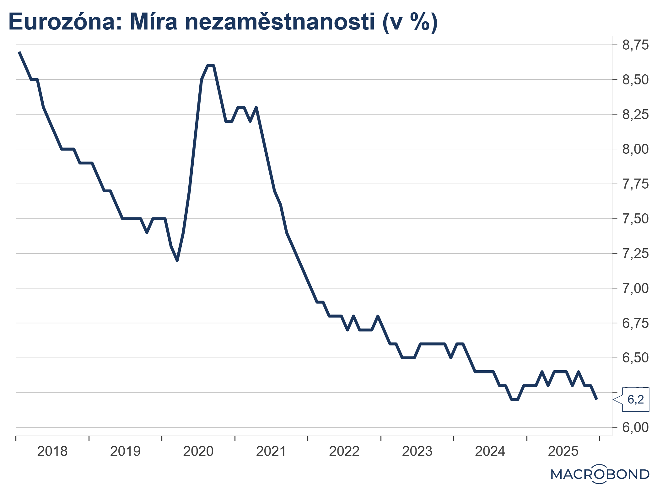 Eurozóna: Míra nezaměstnanosti v prosinci dosáhla 6,2 % při očekávání 6,3 %