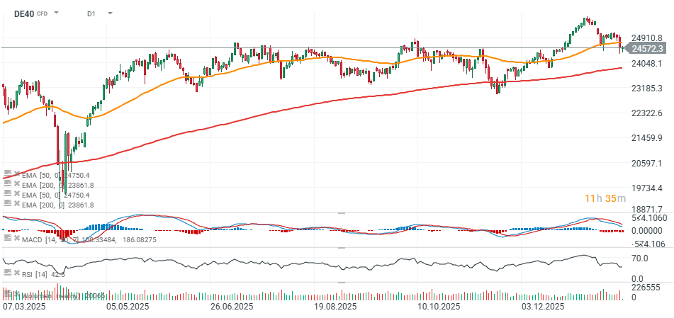 Naopak evropské akcie si vedou dobře – německý DAX přidává téměř 0,5 %, zatímco britský FTSE a francouzský CAC40 mírně rostou.