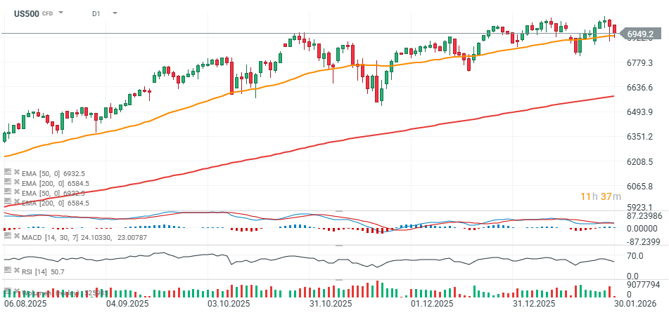 Futures na S&P 500 klesly téměř o 1 %, Nasdaq 100 oslabuje o 1,2 % a Dow o 0,7 %, což signalizuje další risk-off seanci, zejména u technologií.