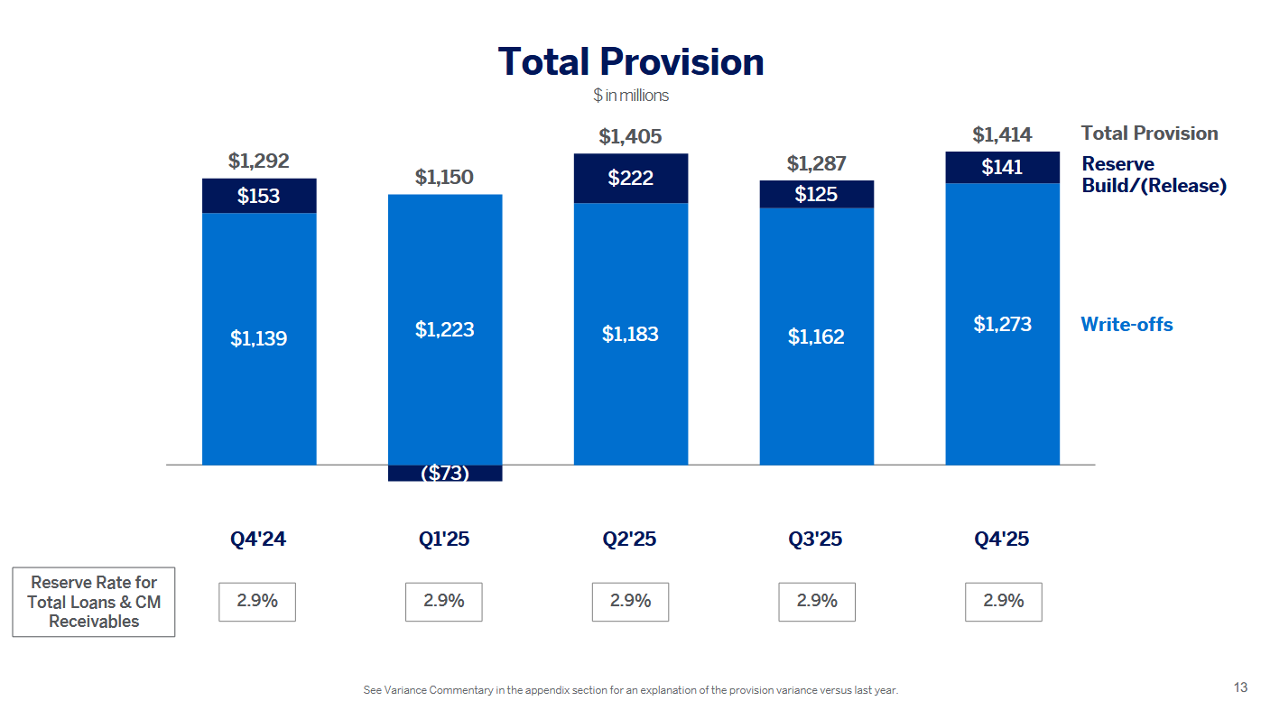 Opravné položky na nesplacené úvěry meziročně klesly o 7,7 % na 1,4 mld. USD při očekávání 1,45 mld. USD.