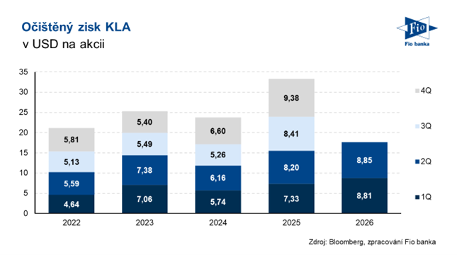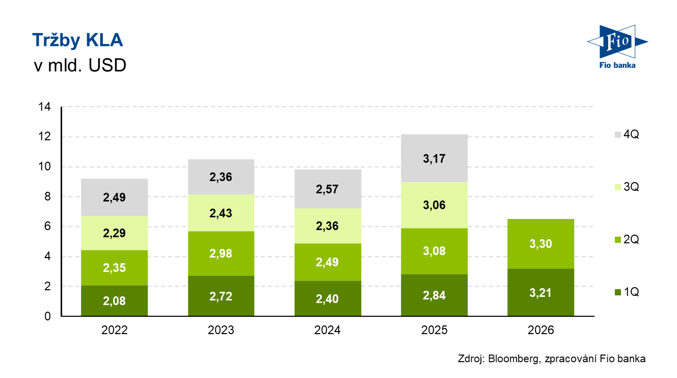 Americký dodavatel vybavení a služeb pro řízení polovodičových procesů a zvyšování výtěžnosti v elektronickém průmyslu, KLA Corporation, zveřejnil výsledky hospodaření za druhý kvartál fiskálního roku 2026, který skončil 31. prosince 2025. Tržby společnosti zaznamenaly meziroční růst o 7,2 %. Analytici z Vital Knowledge upozornili na to, že po výsledcích od společností ASML a Lam Research byla očekávání nastavena vysoko, a tak tento report pravděpodobně nebude velkým překvapením a může jít dokonce o mírné zklamání.
