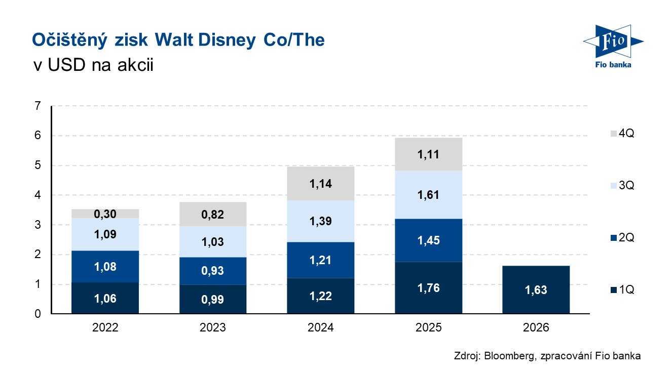 Klíčová slova: Akcie | Bloomberg | CEO | Dividendový výnos | P/E | Ukazatel | Výnos | Zisk na akcii | USD | Obchodování | Zisk | Výsledky | EPS | Banka | Fio banka | Cena | Fio | Fiskální rok | Cílová cena | ROCE | Kapitalizace | Výhled | Konsensus | Výnosy | Konsenzus | Očekávání | Odhady analytiků | Akcie Walt Disney | Čistý zisk | Generální ředitel | Walt Disney | Disney | Hospodaření | Výsledky hospodaření | Pokles | Provozní zisk | Vývoj | Růst | Společnost Walt Disney | Walt Disney (DIS) | Akcie Walt Disney (DIS) | Mediální společnost | Společnosti | Společnost | Výsledky společnosti | Celoroční výhled | 3М | Akcie Walt Disney Co | Walt Disney Co | Avatar | Sport | Směřování | ProCent | Očištěný zisk na akcii | Fio banka, a.s. | Ředitel společnosti | Michal Šnobl | Rok 2026 |