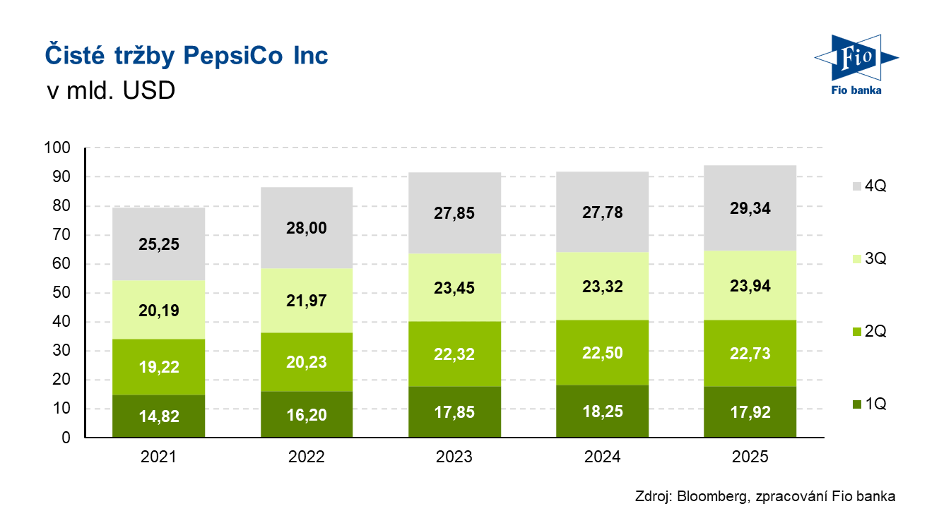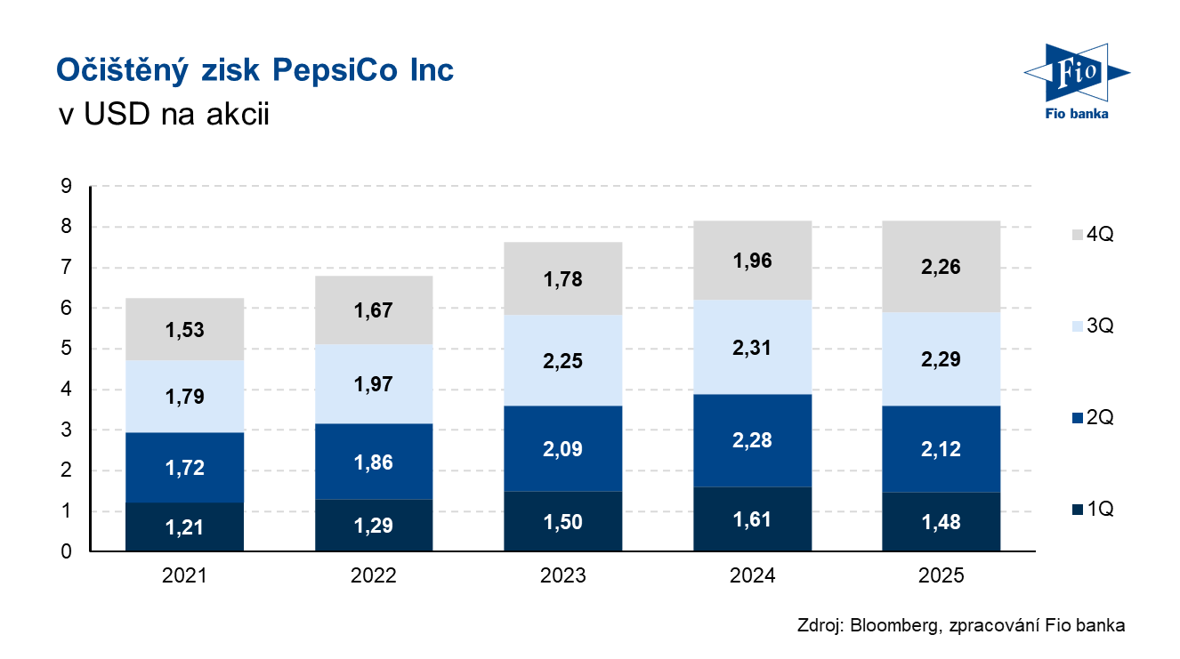 Klíčová slova: Analytik | Dividendy | Akcie | Bloomberg | CEO | Cash flow | Dividenda | Dividendový výnos | Investice | Marže | P/E | Ukazatel | Výnos | Zisk na akcii | USD | Obchodování | Evropa | Zisk | Výsledky | EPS | Analytika | Banka | Fio banka | Cena | Fio | Fiskální rok | Zpráva | Cílová cena | Provozní marže | ROCE | Tržby | Podnikání | Růst akcií | Citi | Kapitalizace | Výhled | Konsensus | Konsenzus | Očekávání | Odhady analytiků | Kapitálové výdaje | Čistý zisk | Předseda představenstva | Generální ředitel | Financovat | Předseda | Hospodaření | Výsledky hospodaření | Provozní zisk | Zlepšení | Výdaje | Zrychlení růstu | Vývoj | Akcie PepsiCo | Akcie PepsiCo (PEP) | Spotřebitelé | Růst | Afrika | Úspory | Blízký východ | Latinská Amerika | PEPSICO | Růst tržeb | Výhled na rok | PEP | Silný růst | Americký výrobce | Společnosti | Odkupy akcií | Společnost | Výsledky společnosti | 3М | Rozšíření | Tržní odhad | Zpětné odkupy | Asie a Tichomoří | Tichomoří | Asie | EMEA | Zlepšení výkonnosti | Finanční výhled | Očištěný zisk na akcii | Fio banka, a.s. | Rekordní úroveň | Michal Šnobl | PepsiCo (PEP) | Amerika | Rok 2026 | Program zpětného odkupu akcií |