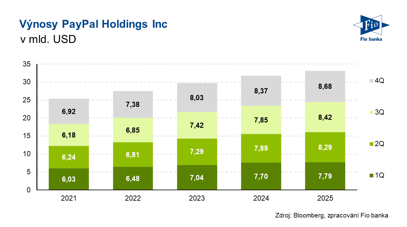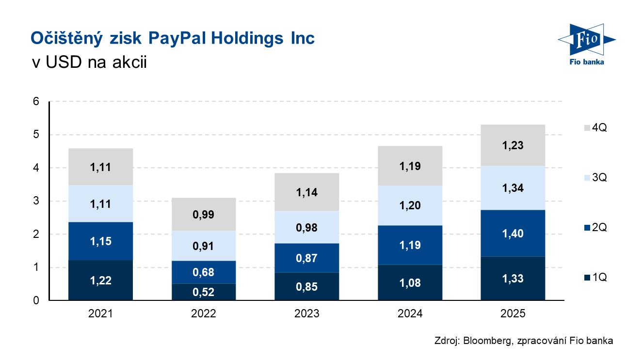 Klíčová slova: Analytik | Akcie | Bloomberg | CEO | Dividendový výnos | EBIT | Marže | P/E | Ukazatel | Výnos | Zisk na akcii | Analytici | USD | Obchodování | Zisk | Výsledky | EPS | Akcie PayPal | Banka | Fio banka | Cena | Fio | PayPal | Trh | Cílová cena | Provozní marže | ROCE | Jefferies | Evercore ISI | Podnikání | Firmy | Kapitalizace | Výhled | Konsensus | Výnosy | Očekávání | Očekávání investorů | Růst zisků | Kapitálové výdaje | Čistý zisk | Objem | Obchod | Generální ředitel | Ředitelka | Hospodaření | Inovace | Výsledky hospodaření | Paypal Holdings | Pokles | Provozní zisk | Meziroční růst | Výdaje | FCF | Vývoj | Špatné výsledky | Akcie Paypal (PYPL) | PYPL | Růst | Umělé inteligence | Vedení společnosti | Výhled na rok | Objem transakcí | Prodej | Odvětví | Načasování | Provozní náklady | Společnosti | PayPal Holdings Inc | RBC | Finanční ředitelka | Odkupy akcií | Společnost | Výsledky společnosti | Celoroční výhled | 3М | Pokles zisku | Tržní odhad | Zpětné odkupy | Závazek | CEO společnosti | Vice | Směřování | Evercore | ProCent | Platformy | Očištěný zisk na akcii | Odpovědnost | Fio banka, a.s. | Michal Bárta | Náklady | Ředitel společnosti | Mírný růst | Nový CEO | Volné hotovostní toky | Hotovostní toky | Adam | Konzistentní výsledky | Rok 2026 |