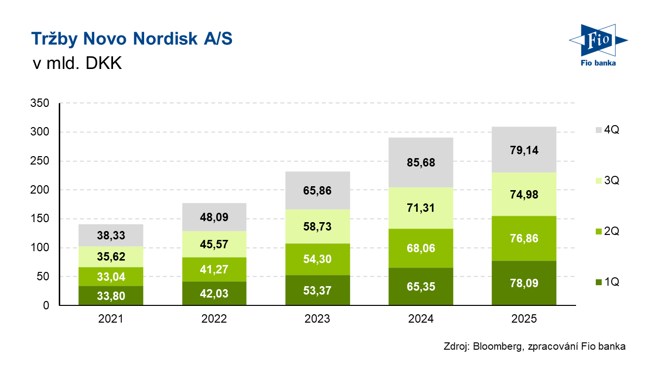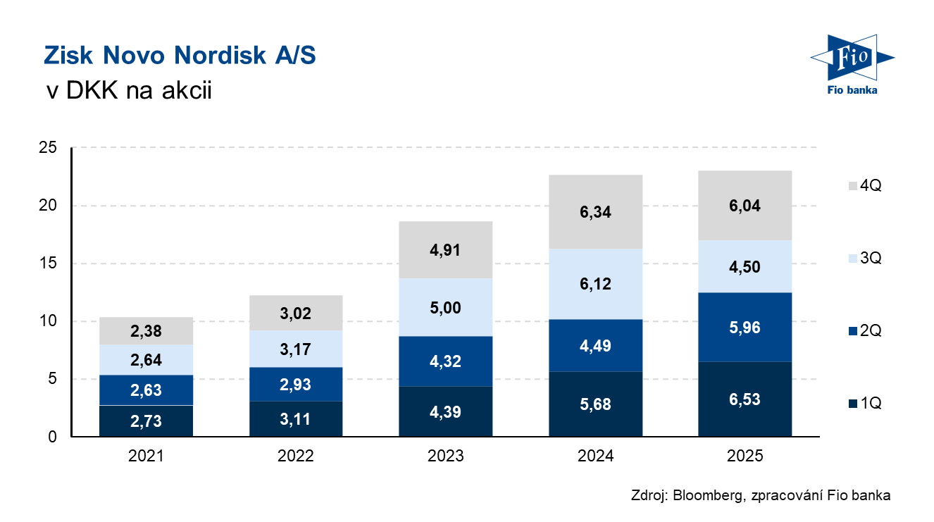 Klíčová slova: USA | Koruna | Akcie | Bloomberg | CEO | Dividenda | Dividendový výnos | EBIT | Marže | NYSE | P/E | Ukazatel | Výnos | Wall Street | Zisk na akcii | Analytici | USD | Investoři | Zisk | Výsledky | EPS | Banka | Fio banka | Cena | Dánská koruna | Fio | Trh | Cílová cena | Hrubá marže | Provozní marže | ROCE | Tržby | Burze | Kapitalizace | Výhled | Konsensus | Konsenzus | Očekávání | Čistý zisk | Generální ředitel | Na burze | Farmaceutická společnost | Hospodaření | Výsledky hospodaření | Pokles | Provozní zisk | Meziroční růst | Vývoj | Růst | Novo Nordisk | Představenstvo | Pokles tržeb | Prodej | Společnosti | Společnost | Výsledky společnosti | 3М | Zisk EBIT | Vice | Wegovy | Společnost Novo Nordisk | Novo | Dánská farmaceutická společnost | Novo Nordisk A/S | Ozempic | Fio banka, a.s. | Akcie Novo Nordisk | Rok 2025 | Michal Bárta | Náklady | CagriSema | Lék Wegovy | Program zpětného odkupu akcií |