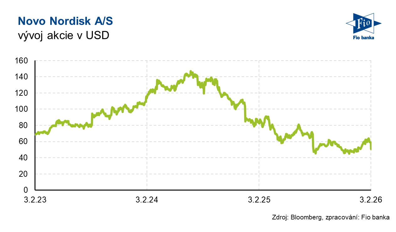 Dánská farmaceutická společnost Novo Nordisk zveřejnila výsledky hospodaření za celý rok 2025. Přestože čísla byla zhruba v souladu s očekáváním, tak se investoři zaměřili na výhled. V tomto roce Novo Nordisk očekává pokles tržeb při konstantních směnných kurzech o 5 až 13 %, když konsensus Wall Street činil pouze -1,39 %.