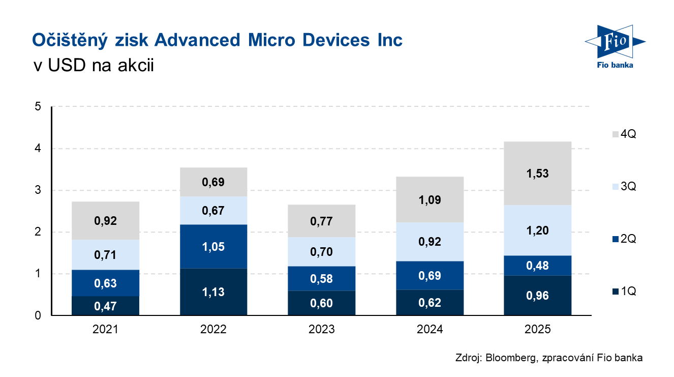 Klíčová slova: Analytik | Akcie | Bloomberg | Dividendový výnos | Investice | Marže | P/E | Sentiment | Ukazatel | Výnos | Zisk na akcii | Analytici | USD | Barclays | Obchodování | Investoři | Zisk | Výsledky | EPS | Banka | Fio banka | Cena | Fio | Signály | Cílová cena | Hrubá marže | Provozní marže | Tržby | Citi | Kapitalizace | Výhled | Konsensus | Institucionální investoři | Konsenzus | Očekávání | Kapitálové výdaje | Očekávání trhu | Čistý zisk | Ředitelka | Hospodaření | Výsledky hospodaření | Technologická společnost | Provozní zisk | Meziroční růst | Výdaje | FCF | Vývoj | Růst | Potenciál | Akcie AMD | Růst tržeb | Bloomberg Intelligence | Advanced Micro Devices | AMD | Advanced Micro Devices (AMD) | Konsensus trhu | AI | Společnosti | Finanční ředitelka | Společnost | Výsledky společnosti | 3М | Krátkodobý sentiment | Akcie Advanced Micro Devices | Společnost AMD | Vice | Americká technologická společnost | Komentář vedení | Očištěný zisk na akcii | Oznámení | Výzkum a vývoj | Fio banka, a.s. | Vysoká očekávání | Potenciál růstu | Rok 2025 | Michal Bárta | Datová centra | Technologická společnost AMD | Data centra | Volné hotovostní toky | Hotovostní toky | Rekordní výsledky | MI308 | Čipy |